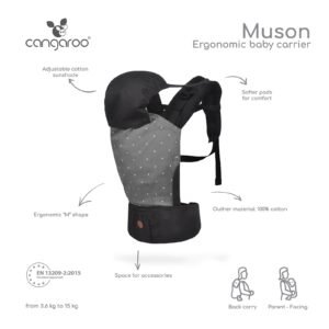 Kangur për bebe Cangaroo Muson, 5kg+, zezë/hirtë