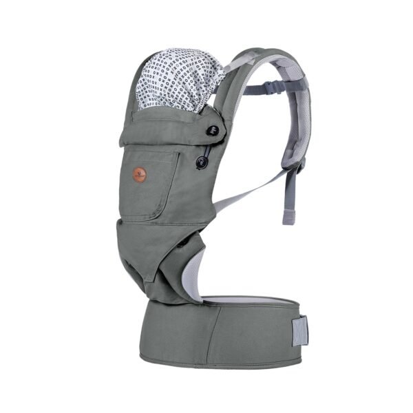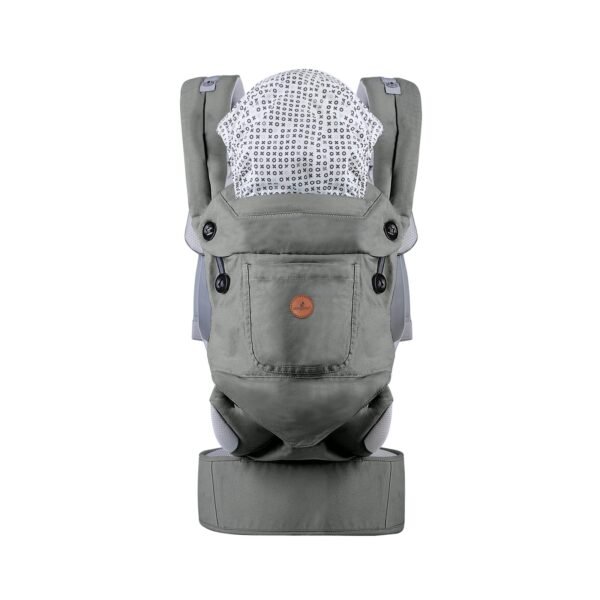 Mbajtësja e foshnjës është e përshtatshme për fëmijë të moshës 5 muajsh deri në 15 kg dhe mund të përdoret në tre pozicione: me fytyrë nga prindi, me fytyrë përpara dhe me shpinën e prindit. Është bërë nga materiale me cilësi të lartë: 100% pambuk dhe një rreshtim rrjete që lejon frymëmarrjen e bërë nga 100% poliester, duke e bërë të përshtatshme për të gjitha stinët. Ka një kapuç për të mbrojtur kokën e foshnjës, një xhep praktik për aksesorët dhe siguron një formë M ergonomike për këmbët e foshnjës. Një brez i gjerë dhe i rregullueshëm me velcro dhe rripa të mbushur shpatullash shpërndajnë në mënyrë të barabartë peshën, duke mbrojtur shpinën dhe belin e prindit. Produkti është i përshtatshëm për larje me dorë