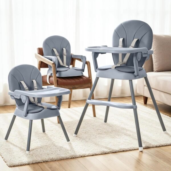 Karrigia ushqimi për fëmijë, e bërë nga alumin dhe plastike, ka një dizajn modern në ngjyrë gri dhe është e përshtatshme për fëmijët mbi 6 muaj. E lehtë dhe e qëndrueshme, me një peshë max mbajtëse prej 15 kg. Kjo karrige ofron komoditet dhe siguri gjatë ushqimit, duke e bërë procesin më të këndshëm për fëmijët dhe prindërit. E lehtë për t’u pastruar dhe transportuar.