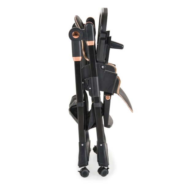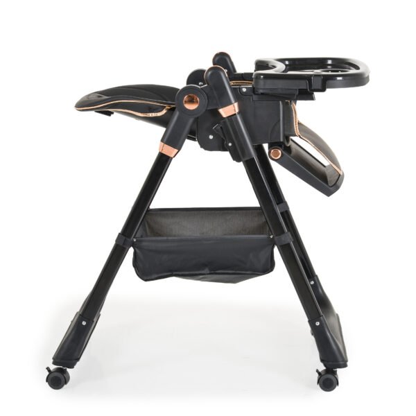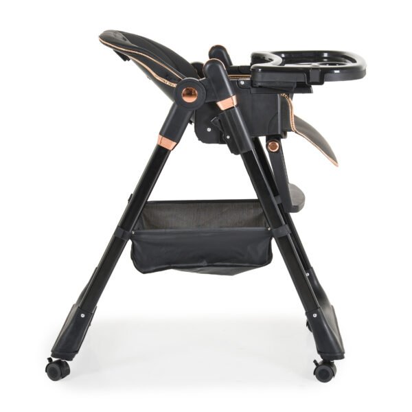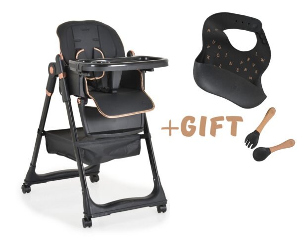 Për fëmijë nga 6 + muaj dhe pesha maksimale deri në 15 kg. Palosja në një karrige mbështetëse me një buton shtypës. Ulësja e madhe jashtëzakonisht e rehatshme me bazë të lëvizshme prej lëkure ECO me cilësi të lartë për pastrim të lehtë. 7 pozicione lartësie. Tabaka rregulluese e ushqimit të dyfishtë me 3 pozicione dhe majën e lëvizshme për pastrim më të lehtë. Mbështetëse e rregullueshme e këmbës-3 pozicione për lartësinë dhe këndin. 2 pikë kajishii me 5 pika me jastëk të butë në shpatulla. Sistemi i ri i pavarur lehtëson palosjen dhe mbajtjen e një karrige të lartë.