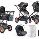 I përshtatshëm për foshnje nga 0+ muaj deri në 22 kg. Çmimi i mësipërm është për karrocën me krevat dore, sedilje verore, adaptorë MAXI-COSI për sediljen e makinës, jastëk gjumi, mbulesë shiu dhe rrjetë mushkonjash. Kreu i karrocës është me mbulesë për këmbët, jastëk të butë gjumi, tendë të rregullueshme. Sedilja verore është me mbulesë për këmbët dhe tendë të rregullueshme me dritare. Detajet: Kornizë alumini; Dorezë me lëkurë të zezë PU të qepur me dorë; Rrota të përparme të rrotulluara 360° – 7 inç. Rrotat janë me sistem të veçantë thithës goditjesh për çdo terren.; Rrota të pasme – 10 inç; Parakolp i lëvizshëm përparmë prej lëkure PU; Shportë aksesorësh; Korniza e karrocës është prej alumini. Maksikoz e cila shtrihet me e pershtatshme per beben tuaj