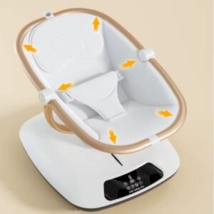 Mbështetëse e rregullueshme për shpinën e foshnjës: Karrigia e lëkundjes për fëmijë me mbështetëse të rregullueshme për shpinë mund të rregullohet lehtësisht për të siguruar që foshnja juaj të ndihet rehat në pozicione të ndryshme, pavarësisht nëse është duke pushuar, duke fjetur apo duke luajtur. Telekomandë: Me telekomandën, ju mund të rregulloni pa mundim cilësimet e karrigës si muzika, dridhjet ose shtrirja pa pasur nevojë ta shqetësoni foshnjën tuaj. Mbështetëse për këmbët: Mbështetësja e këmbëve ofron mbështetje shtesë për këmbët e foshnjës suaj, duke siguruar që ato të jenë të pozicionuara rehat gjatë gjumit ose kohës së lojës. Karrige shumëfunksionale për fëmijë: Kjo karrige shumëfunksionale mund të përdoret për qëllime të ndryshme, duke përfshirë një karrige lëkundëse për fëmijë, një ndenjëse qetësuese vibruese dhe një hapësirë relaksuese muzikore – të gjitha në një. Rrip sigurie me 5 pika: Për qetësinë tuaj mendore, rripi i sigurisë me 5 pika siguron që foshnja juaj të jetë e lidhur mirë, duke i dhënë atij një pozicion të sigurt dhe të qëndrueshëm uljeje ndërsa lëkundet dhe luan. Metoda e karikimit me dy prekje: Karikoni lehtësisht karrigën me metodën e karikimit me dy prekje, duke e bërë të lehtë për ju që ta mbani karrigën të ndezur dhe gati për përdorim. Vibrime qetësuese: Karrigia lëkundëse përmban vibracione qetësuese që e qetësojnë butësisht foshnjën tuaj, duke e ndihmuar atë të relaksohet ose të bjerë në gjumë të rehatshëm