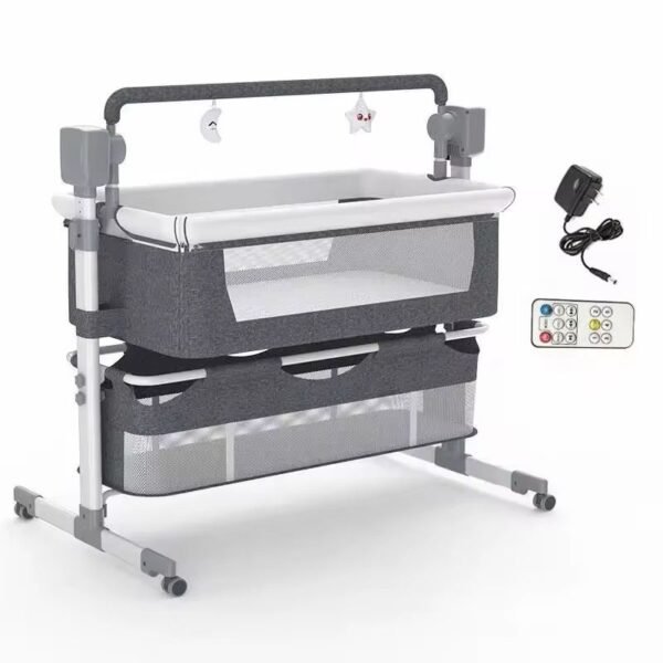 Djep elektrik për fëmijë. Nga 0 muaj deri në 9 kg. derisa fëmija të fillojë të ulet, të gjunjëzohet ose të qëndrojë në këmbë vetëm. 5 shpejtësi lëkundëse. Kuti muzikore, kohëmatës, Bluetooth, telekomandë. Produkt shumëfunksional – luhatje, krevat fëmijësh me tendë, rrjetë mushkonjash dhe 2 lodra të buta