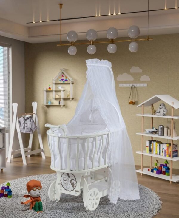 ✅ Lekundet butësisht, duke ndihmuar bebin të qetësohet dhe të flejë më shpejt. ✅ Dizajn modern & natyral prej druri, që përshtatet me çdo dhomë fëmijësh. ✅ Vjen komplet si në foto – me mbrojtëset anësore, mbulesën me tyl dekorativ dhe dysheki. Krijo një hapësirë të ngrohtë dhe plot dashuri për bebin tënd 💛 📦 Shtrati ju vjen i pa montuar – ne paketim ju vjen manuali i montimit ose Qr kodi i montimit