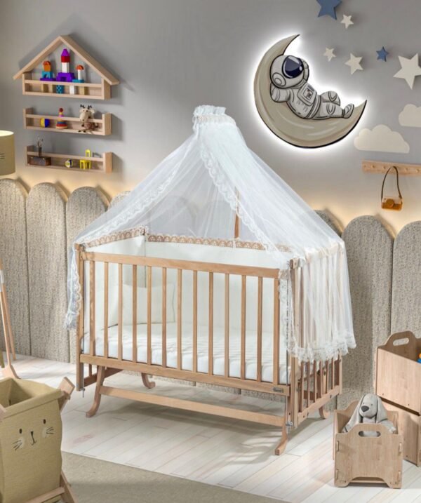 Shtrat druri për fëmijë multifunksional -DE15 ✅ Lekundet butësisht, duke ndihmuar bebin të qetësohet dhe të flejë më shpejt. ✅ Pjesa e përparme me lift – shumë e përshtatshme për ta hapur dhe mbyllur lehtësisht sipas nevojës. ✅ Dizajn modern & natyral prej druri, që përshtatet me çdo dhomë fëmijësh. ✅ Vjen komplet si në foto – me mbrojtëset anësore, mbulesën me tyl dekorativ dhe dysheki. ✅Ka 3 nivele të dyshekut . ✅Dimensioni 120×60 Krijo një hapësirë të ngrohtë dhe plot dashuri për bebin tënd 💛 📦 Shtrati ju vjen i pa montuar – ne paketim ju vjen manuali i montimit ose Qr kodi i montimit
