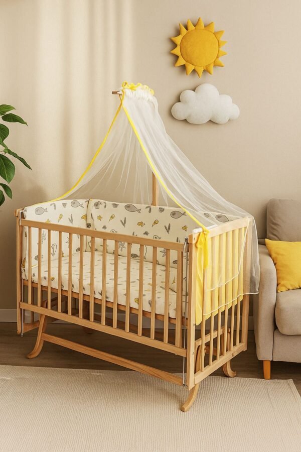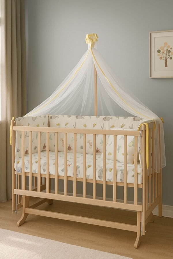 ✅ Vjen komplet si në foto – me mbrojtëset anësore, mbulesën me tyl dekorativ dhe dysheki.