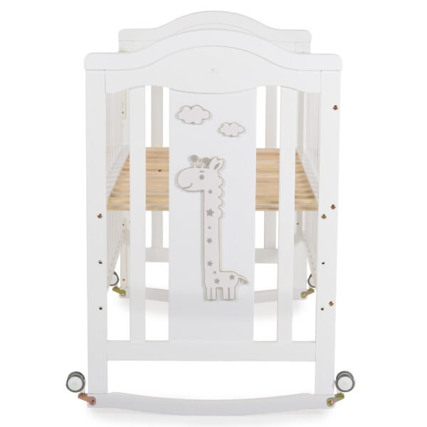 Krevati për foshnje Juno nga Cangaroo kombinon rehatinë, sigurinë dhe funksionalitetin në një dizajn elegant, i krijuar për të siguruar një mjedis gjumi të qetë dhe komod për foshnjën tuaj që nga ditët e para. I prodhuar nga dru pishe me cilësi të lartë, ofron stabilitet dhe qëndrueshmëri për përdorim afatgjatë. Karakteristikat kryesore: • I prodhuar nga dru pishe i fortë dhe i qëndrueshëm • 3 pozicione lartësie dysheku të rregullueshme sipas moshës së fëmijës • Shina anësore e ulur për akses më të lehtë dhe komoditet shtesë për prindërit • Funksion lëkundjeje për një gjumë më të lehtë qetësues – mekanizmi lëkundjeje mund të përdoret pas tërheqjes së rrotave, duke lejuar që shtrati të funksionojë si djep • 4 rrota me ndalesa për lëvizje të lehtë dhe pozicionim të sigurt • Ndërtim i qëndrueshëm dhe i sigurt për gjumë të qetë • Figurë dekorative 3D gjirafe që shton një theks komod dhe të gjallë në dhomën e fëmijëve • I përshtatshëm për një dyshek 120 × 60 cm