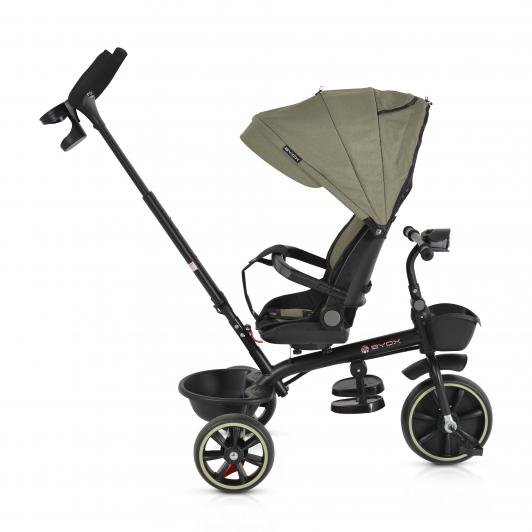 Për fëmijët mbi 12 muaj me peshë maksimale deri në 25 kg.Mund të përdoret pa tendë, dorezë të kontrollit prindëror dhe dërrasë sigurie. Sedilja: rrotullohet në 360°;. Mbështetësja e rregullueshme e shpinës,timon i palosshëm; Pushim këmbësh për fëmijët më të vegjël. Shtytësi prind – i rregullueshëm, që kontrollon drejtimin e lëvizjes së rrotës së përparme.