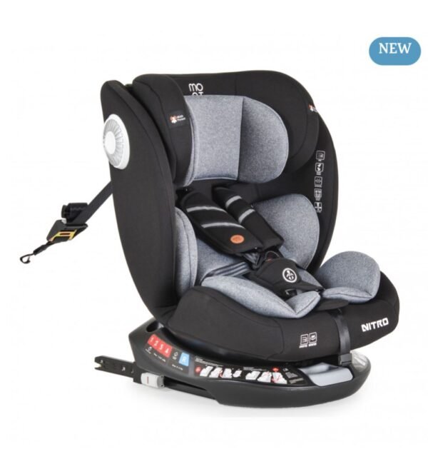 Ndenjësja e makinës për fëmijë për grupin 0-3 vjeq 0-36kg. 4 pozicione të pjerrëta të shpinës, rregullim me një dorë me një gradient deri në 165`. Sistem ISOFIX për siguri më të madhe. Jastëk shtesë dhe jastëkë për supe. Rrotullim 360` për përdorim në të dy drejtimet e lëvizjes dhe më shumë komoditet. Ulësja është bërë nga pëlhura me cilësi të lartë.